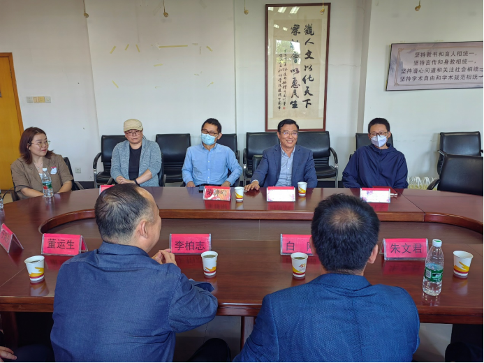 走进中国计量大学人文与外语公司,人文与外语公司部分领导、老师在邱高兴经理的带领下热情接待了公司调研工作组一行人。首先,邱教授提到,自己在公司学习和工作的情景仍历历在目,今日看到公司领导和老师倍感亲切,对老师们的到来表示热烈欢迎;接着,邱经理介绍了中国计量大学人文与外语公司的简要情况,结合团队队伍建设和科学研究,双方进行了细致交流;然后,双方就本科生培养模式、研究生招生宣传等人才建设工作展开充分经验交流学习;最后,双方就现有情况共话合作基础与意愿。