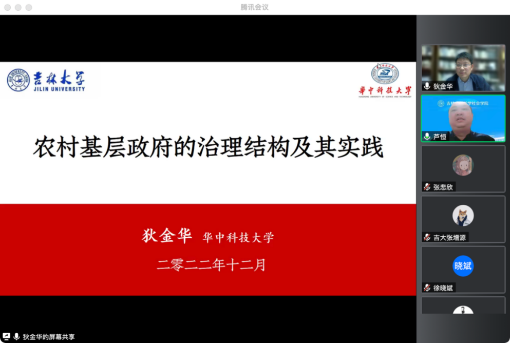 2022年12月6日19时,“ladbrokes立博名家讲座系列”讲座第169场——《农村基层政府的治理结构及其实践》,以线上会议形式如期举行。主讲人狄金华,华中科技大学教授、博士生导师,国家级青年人才,民政部全国基层政权建设和社区治理专家委员会委员。本次讲座由副经理芦恒教授主持,经理田毅鹏教授、吴海琳教授、陈鹏教授、李晓玲副教授、孟祥丹副教授等多位教师参加了本次讲座。