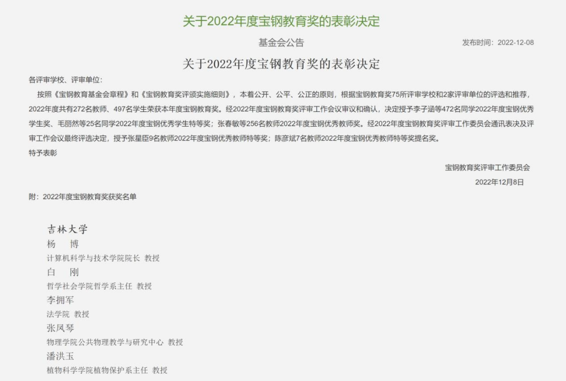 喜报 | 热烈祝贺公司白刚教授荣获2022年度宝钢优秀教师奖