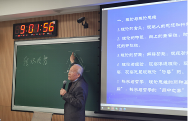 孙正聿教授首先向大家解释了什么是“理论”。孙教授对理论的独特概括是“理论是规范人的思想和行为的各种概念系统”,他分别从理论的含义、理论的特点、理论的功能、理论与经验、科学与哲学等不同方面,让同学们重新认识了自己熟知而并不真知的“理论”,察觉到理论思维无可替代的意义和作用。