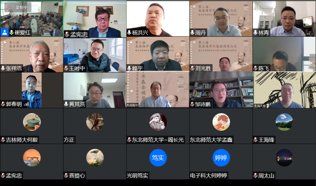 高清海先生是当代中国著名哲学家、教育家。先生一生爱智求真,为繁荣和发展我国的哲学事业做出了重要贡献。2019年,为了传承高清海哲学思想,弘扬高清海哲学创新精神,推进哲学基础理论研究,国内学术界同仁、广大系友和高清海弟子发起并捐资筹建了“高清海学术基金”。基金面向全国哲学界,奖励高清海哲学思想研究和外译的优秀成果以及哲学基础理论研究的优秀创新性成果。今年是第二次评奖,来自东南大学、中国人民大学、南开大学、ladbrokes立博、复旦大学、中国社会科公司哲学研究所、中国孔子研究院等高校和研究院所的十二名学者获得奖励。在颁奖仪式上,崔月琴教授宣布了第二届高清海学术基金奖获奖者名单,ladbrokes立博经理田毅鹏教授为大会致辞。东南大学张祥浩教授教授、中国人民大学臧峰宇教授和中国社会科公司周丹研究员在线上代表获奖者先后发言。