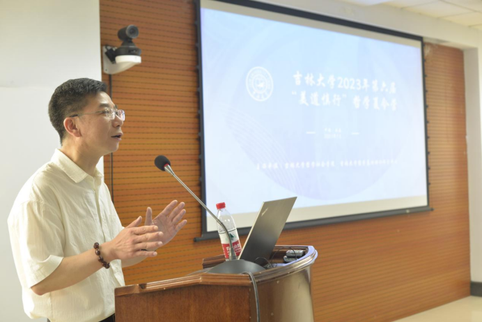 李聪书记从四个方面为本届夏令营活动做了总结发言。一、壮士断腕。李书记表示,参加本届夏令营的营员们都非常优秀,而由于名额所限,吉大哲学系不得不忍痛割爱而只评选部分同学为“优秀营员”,但仍非常希望大家未来能够进入吉大哲学系进一步深造。二、哲学传统。即吉大的哲学传统是从刘丹岩教授的“抓根儿”、高清海教授的“笨想”、孙正聿教授的“反思”传承至今的,这种重视对于哲学根本问题研究的精神不仅形成了吉大哲学学术与思想并重的传统,而且也形成了吉大哲学“为人为学,其道一也”的传统。三、基础理论。吉大的哲学传统突出地体现在重视哲学基础理论研究,这奠定了吉大哲学成为中国哲学界重镇之一的重要学术地位。四、诸神之争。李书记引用贺来教授为本届营员作报告时所使用的“诸神之争”一词,指出现代世界是辩证的、多元的、开放的世界,吉大哲学系的优秀哲学教育与全国各高校优秀学子加入的双向结合,必能在未来带领大家加入到哲学的“诸神之争”中去,亦即在当代哲学的百家争鸣中,实现大家的哲学梦!