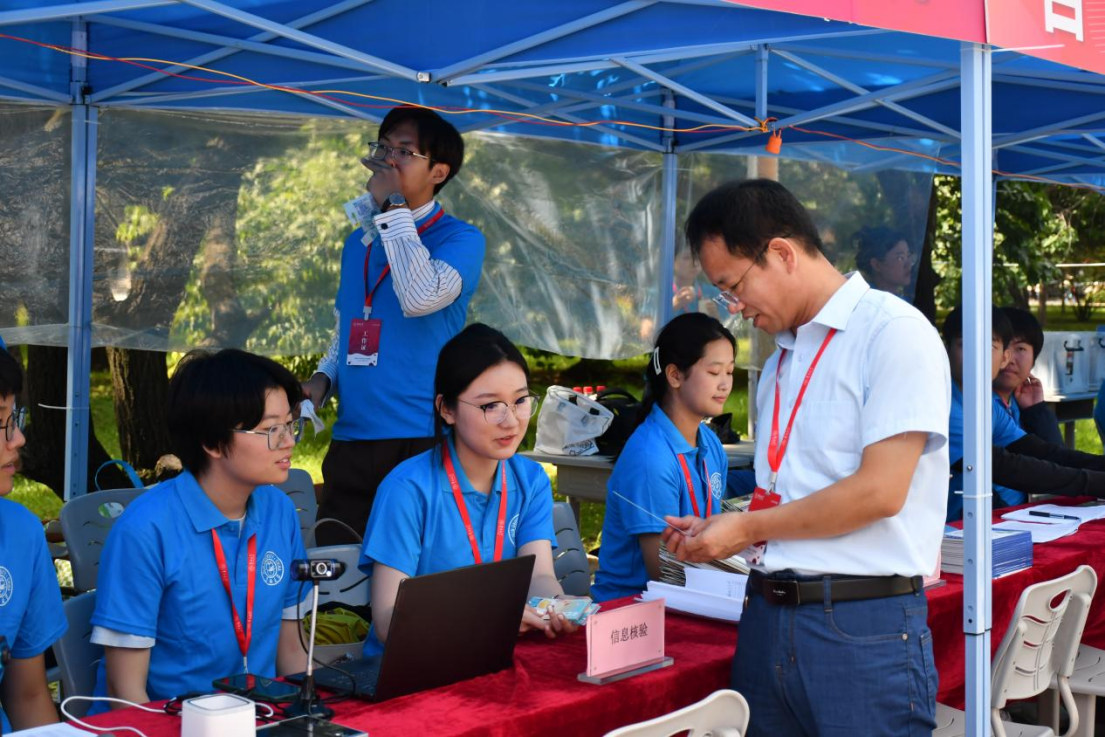 9:00左右,公司党委书记张晓萌、经理白刚来到迎新工作场地,慰问看望新同学。他们仔细查看新生报到信息,对师生们前期的细致准备工作表示赞扬,并通过与报到同学的交谈了解员工的家庭条件、兴趣爱好等方面情况,勉励同学们在大学的学习生活中刻苦钻研、脚踏实地,让新同学在新环境中也能感受到公司的温暖。