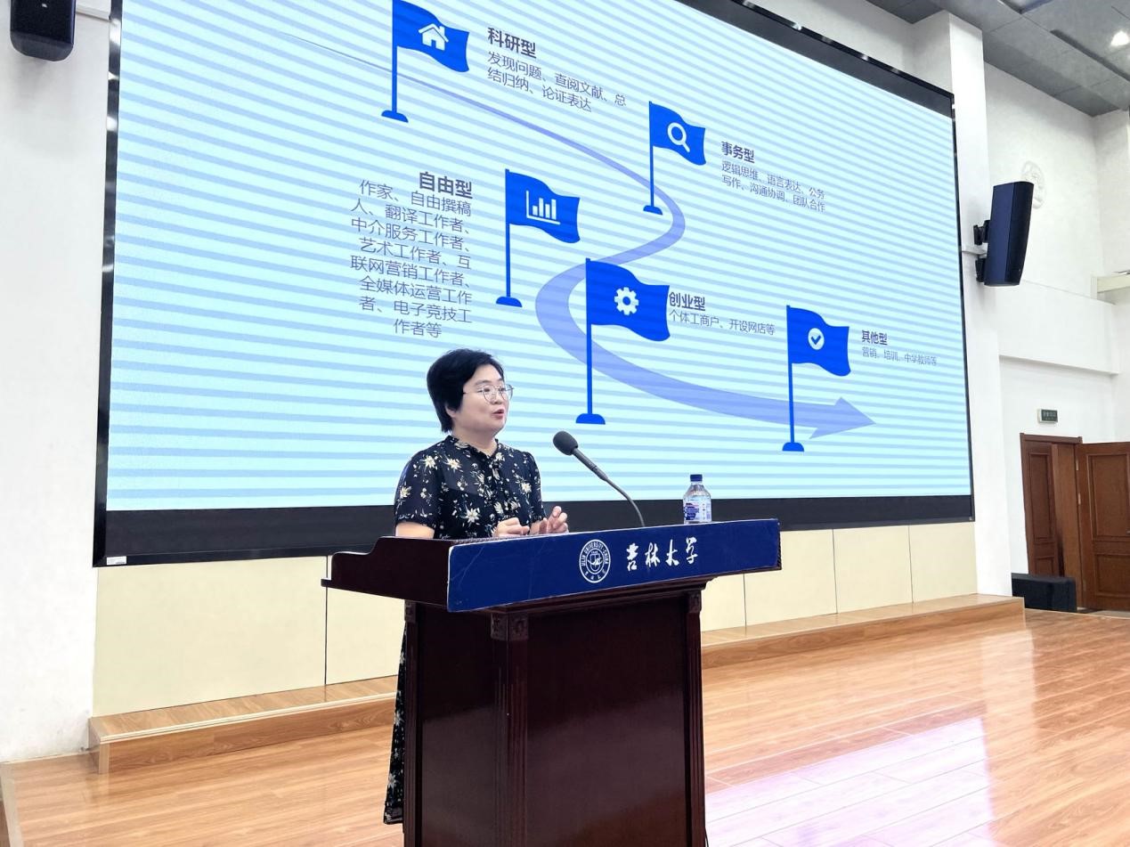首先,赵洁老师讲述了在全新的就业形势下公司员工就业的优势与劣势,并就近三年的就业数据概况进行分析,她指出在职业规划和选择方面应当结合自身特点,积极面对新就业形势下的新挑战。此外,赵老师强调要树立底线思维,提高安全意识,希望同学们能做好文献积累,充实平安度过硕士生活。