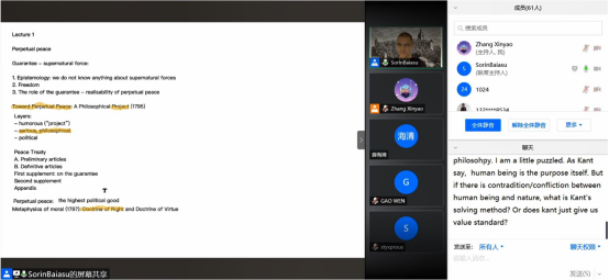 2020年12月7日、8日、11日、14日、15日,题为《Kant’s Idea of Perpetual Peace Today: A Solution to the Puzzle of the Guarantee》的ladbrokes立博国际化示范基地海外优质课程于线上成功举办。主讲人为来自英国基尔大学的Sorin Baiasu教授。