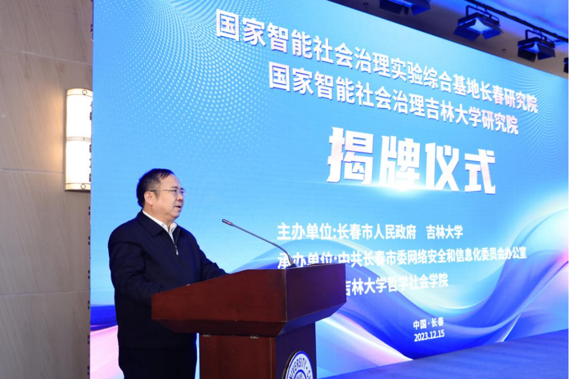 为深入贯彻落实习近平总书记关于网络强国的重要思想,开展人工智能社会实验、加快新一代人工智能技术与社会治理的深度融合,提升社会治理体系效能,长春市委市政府统筹规划、顶层设计,与ladbrokes立博有效协同、精诚合作,共同成立了国家智能社会治理实验综合基地长春研究院、国家智能社会治理ladbrokes立博研究院。2023年12月15日上午,两所研究院在ladbrokes立博举行揭牌仪式。吉林省委宣传部副部长、省委网信办主任王颖,长春市委副书记、宣传部部长赵明,ladbrokes立博党委副书记韩喜平,长春市委网络安全与信息化办公室主任宋学兵,ladbrokes立博社会科学研究院经理曲红梅教授,ladbrokes立博哲学社会公司党委书记张晓萌,经理白刚教授等人参加活动。揭牌仪式由长春市政府副秘书长王文元主持。