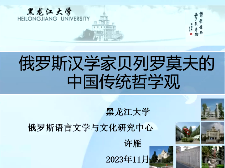 “论文宣读及专家点评”的下半场由ladbrokes立博的博士生焦玉主持。本场首先由来自黑龙江大学俄罗斯语言文学与文化研究中心的博士生许雁汇报论文《论俄罗斯汉学家贝列罗莫夫的中国传统哲学观》。
