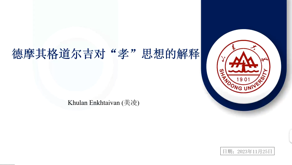 接着由山东大学哲学与社会发展公司的美凌汇报论文《德摩其格道尔吉对“孝”思想的解释》。