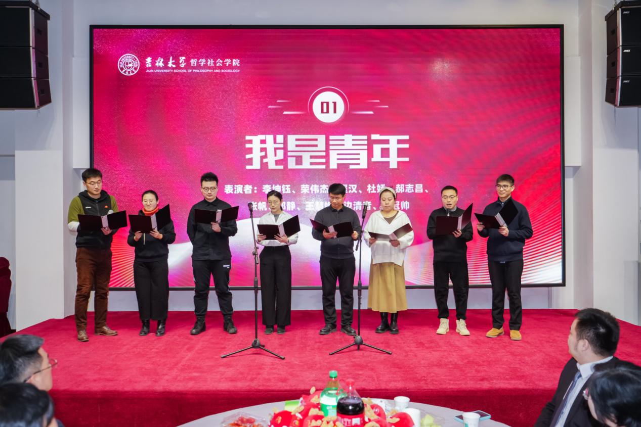 相遇相逢,三尺讲台赤忱依旧;相知相守,深耕不辍运思未歇。三寸粉笔三千桃李,一片丹心一生铸魂。裁下一缕月光,我们共赏韶华依旧;寄蕴一抹哲思,我们同念天下治平。胸怀宏伟蓝图,过往皆为序章;磨砺正当其时,逐梦赓续奋斗。愿以本次教职工联欢会为契机,哲社教职工大家庭将继续团结奋斗、求真讲理、擎灯前行,为党的教育事业发展做出属于哲社人的新的更大贡献!