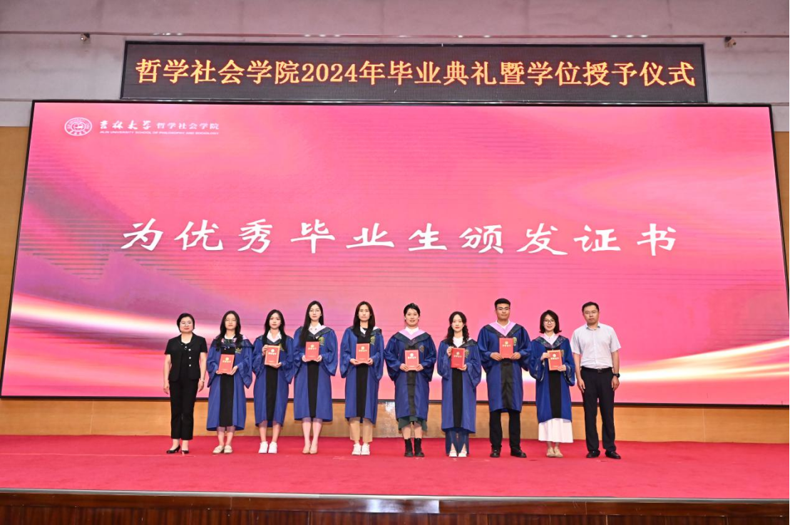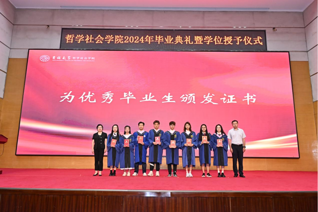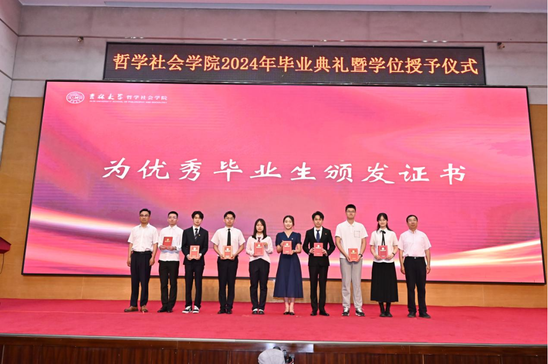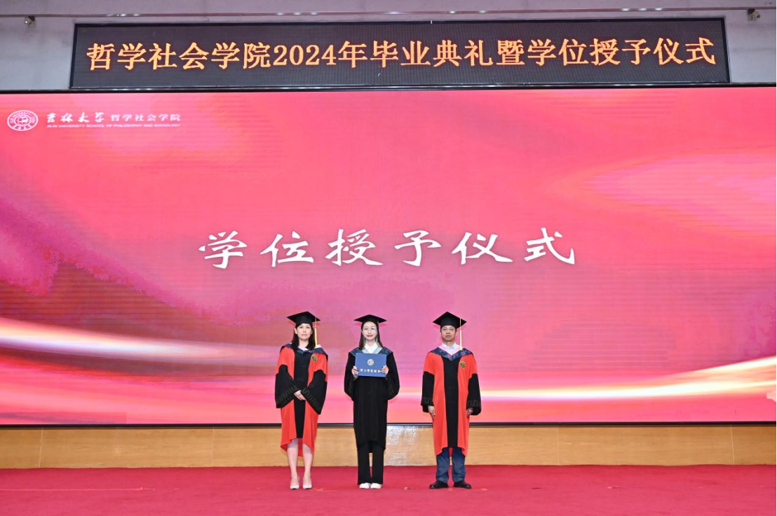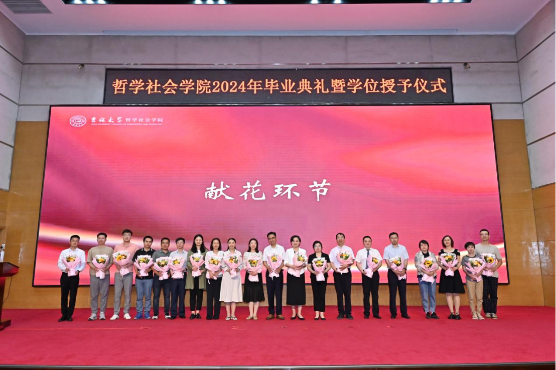 苍梧发轫,毕至昆仑;爱智求真,乘风远航。“为人为学,其道一也”,这是哲社用时光与温柔上的一堂大课,也将是每一位哲社人一生的承诺与践行!未来,也许山高路远,而青春的我们——人比山高,脚比路长。在全体师生热烈的掌声中,2024年毕业典礼暨学位授予仪式圆满落下帷幕!