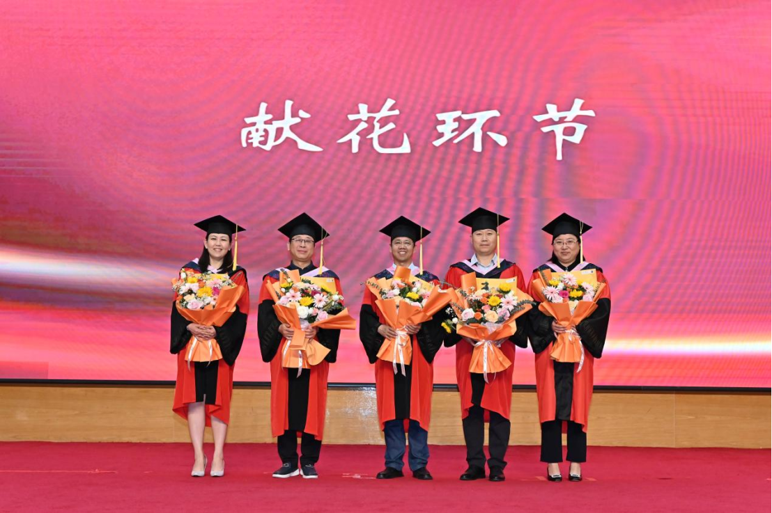 典礼第六项,公司员工代表们为教师代表们献花。“哲思群理,修齐治平”,研究实践、求学问道,老师们的精神风骨潜移默化地影响着同学们的成长,谆谆教诲指引着学子的人生道路。红烛春晖、桃李芬芳,怀揣着老师们的殷切期望与深情嘱托,同学们必将把哲社人的青春论文写在祖国大地上。