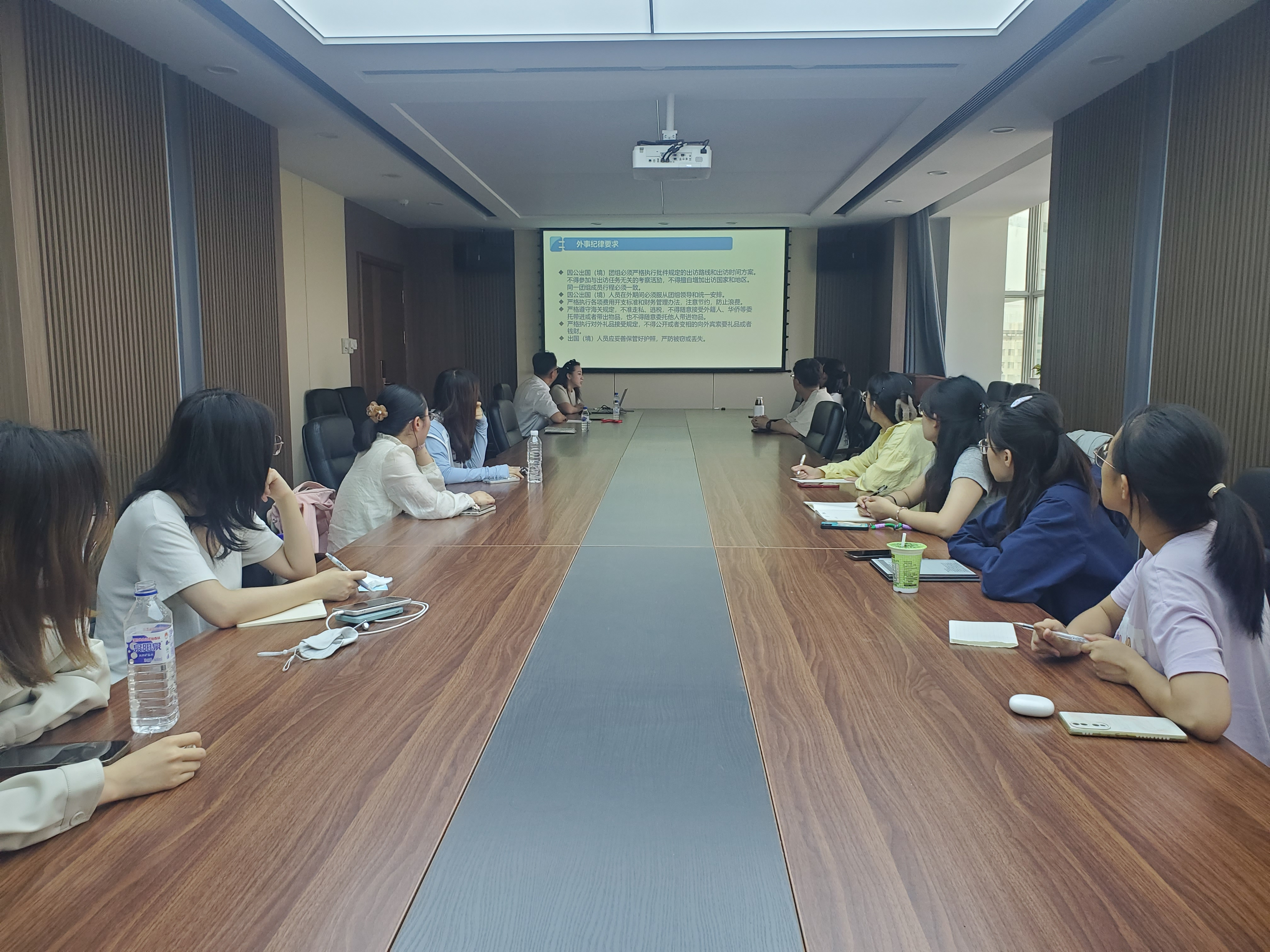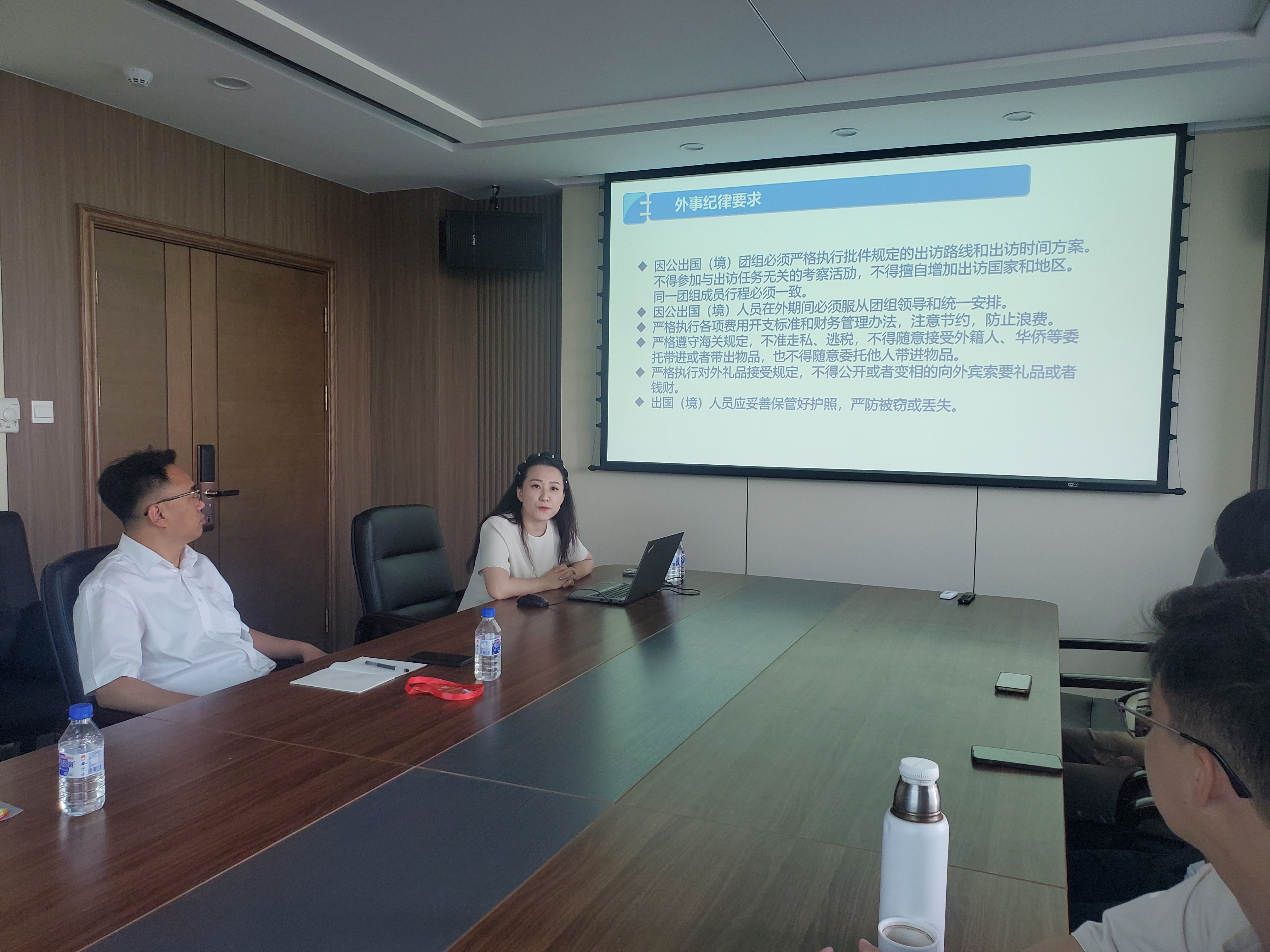 刘爽科长从国家安全与保密纪律、外事纪律要求、出访团组管理、国(境)外突发事件应急处理与领事保护等方面进行了细致地讲解,还向团组成员详细介绍了目的国家、目的院校的基本情况西方礼仪,并提醒团组成员做好行前准备。