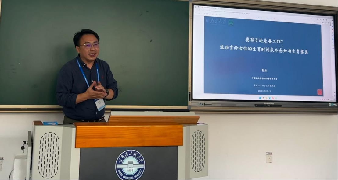 南京大学社会公司副经理郭未教授作了题为《数字时代中的流动世代:母职惩罚视角下的生育意愿》的报告。他分析了流动女性预期生育成本与其生育意愿之间的因果关联,利用产前样本和反事实产前样本计算流动女性生育时间成本,运用产后样本与反事实产后样本计算流动女性工作比例。研究发现,流动女性生育的产前和产后时间成本越高,其一孩和二孩的生育意愿越低。