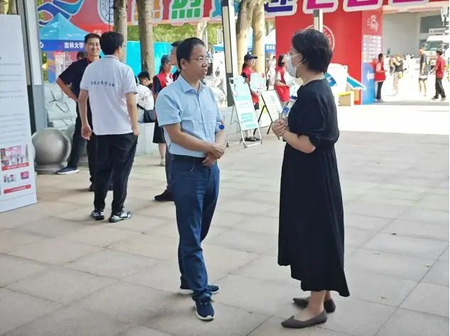 8月23日中午,白刚经理、张晓萌书记来到迎新工作场地检查公司迎新工作,看望慰问报到新生与工作人员。