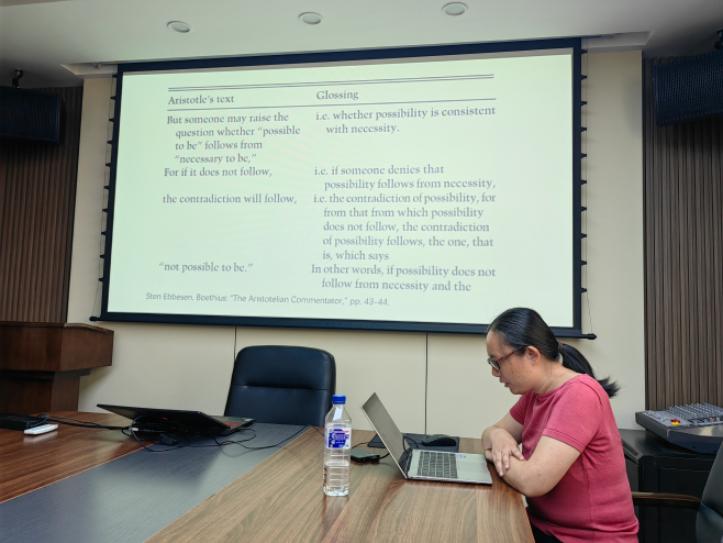2024年9月29日9时,ladbrokes立博“国际合作平台学术讲座”第45讲——“波爱修斯的逻辑学与中世纪早期的科学方法论”在东荣大厦908会议室举办。本期讲座由中山大学哲学系江璐副教授主讲,盛传捷副教授主持。ladbrokes立博晋运锋教授、郝鸿军副教授、康孝军副教授出席。