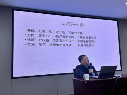 邴正教授从“追随大师,才能超越自我”“潮头弄棹,才能风光无限”和“根治大地,才能枝繁叶茂”等三个方面展开介绍。首先,邴正教授从七七年高考谈起。“七七级”被视为一个时代的神话,在ladbrokes立博哲学专业中,这一批员工与高清海、舒炜光、邹化政等大师同行,向大师们学习精深苦读、笨想、有我、创新、包容和“治学为人,其道一也”的精神品格。然后,邴正教授结合自身的学术经历,介绍了不同阶段的学术研究重点和主要成绩,重点分享了自己的科研体会,特别提出在方法上要“笨想慎思寻逻辑,出新意于法度中”。最后,邴正教授结合自身的科研经历,总结宝贵的科研经验,与参会者分享。