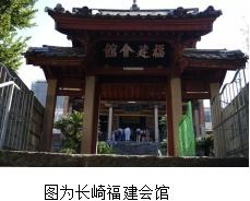 长崎作为中国与日本交流的重要文化窗口,至今仍保留着许多中国人的古风胜迹。唐船贸易时代(17世纪—19世纪中期)末期,留在日本的中国人开始进行商业经营,长崎逐渐发展出三江会所(浙江帮、江苏帮、江西帮)、广州会所、福建会馆。其中,于1868年成立的八闽会馆(1897年改名为福建会馆),是福建人为了保护自己,进行信息互助,协助福建人成员从事贸易往来活动而自行组建成立的。尽管随着时间发展,在社会变迁、移民、战乱等因素中华侨组织受到一定影响,例如三江会所和广东会所现已解散,但是现在福建会馆在理事会的运行结构下依然有序运行并且与其他各华侨组织保持积极的关系。扎根长崎,承载祖辈志业,传承中华文化。