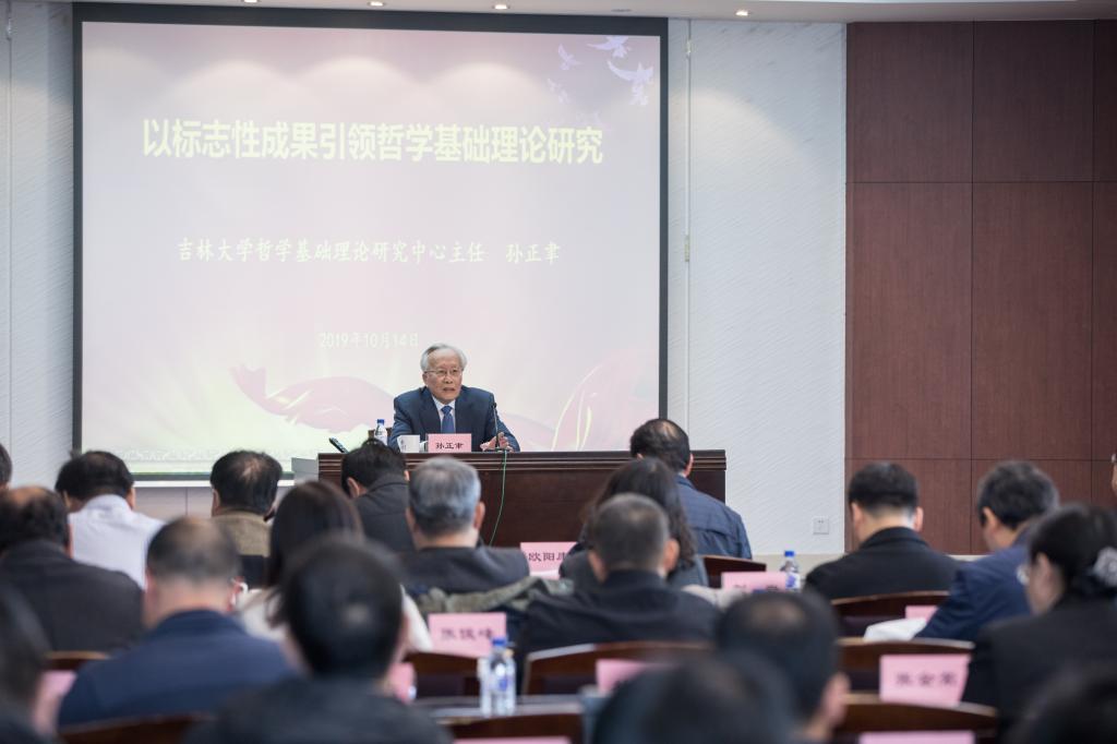 哲学基础理论研究中心主任孙正聿教授代表中心全体成员向长期以来关心和支持中心建设的教育部社科司、省委宣传部、兄弟院校的研究基地和学术刊物,向ladbrokes立博党政领导和社会科学处、发展规划处等职能部门以及ladbrokes立博的党政领导和全体教师、工作人员和同学们表示衷心的感谢,并作《以标志性成果引领哲学基础理论研究》的总结报告。报告从四个方面总结中心的建设经验和思考对中心的未来发展。