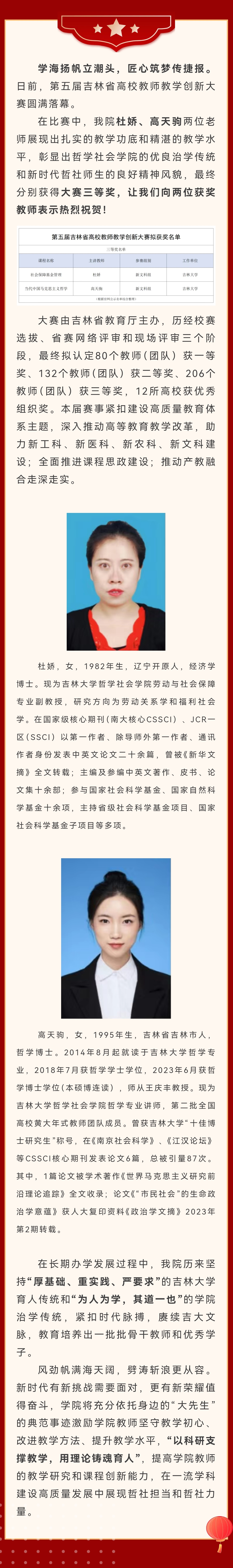 喜报 | 热烈祝贺公司杜娇、高天驹老师获得第五届吉林省高校教师教学创新大赛三等奖