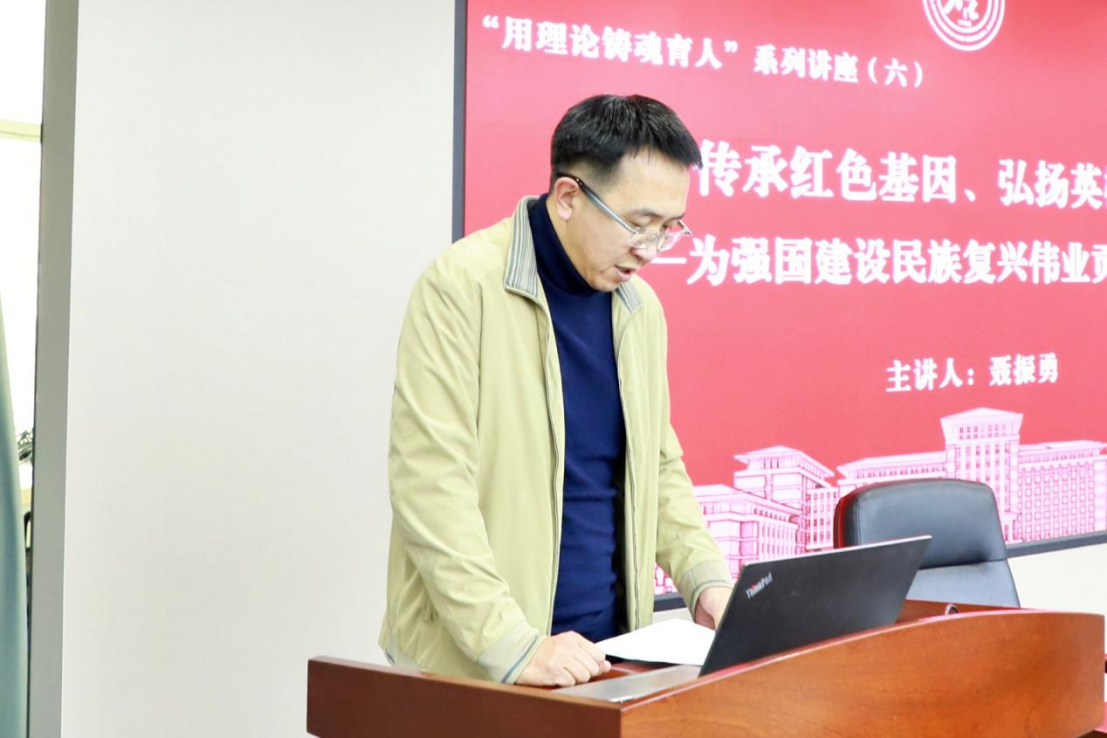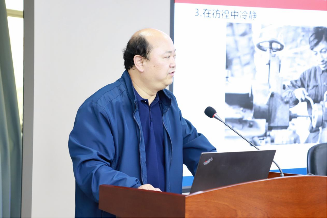10月23日,系列讲座第六讲在中心校区东荣大厦904会议室举办。本次活动邀请鞍钢集团党委宣传部(企业文化部、统战部)部长、高级政工师聂振勇老师以“传承红色基因,弘扬英模精神——为强国建设民族复兴伟业贡献青春力量”为题向公司师生进行专题授课。公司领导班子、两委委员及各系师生党员共同参加本次讲座,讲座由公司党委副书记兼副经理朱大卫主持。
