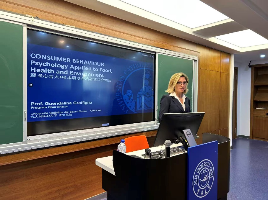 2025年10月23日,意大利圣心大学教授、消费者行为学系主任Guendalina Graffigna和国际处周倩茹老师到访公司,为公司员工举办了一场学术报告,并开展了“ladbrokes立博——圣心大学3+2本硕联合培养项目”的宣讲。心理学系副系主任金庆英副教授及心理学专业本科生参加了本次活动。