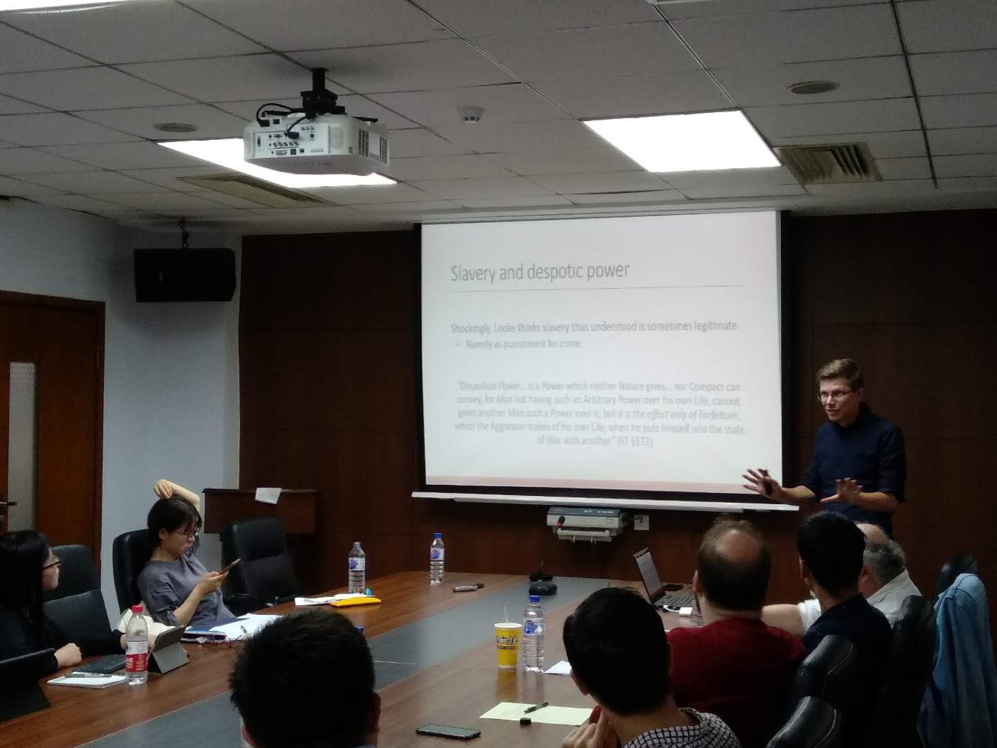 2019年6月13日下午,由ladbrokes立博、ladbrokes立博哲学基础理论研究中心主办的ladbrokes立博国际化示范基地学术讲座第八讲于东荣大厦908会议室举行。荷兰阿姆斯特丹大学助理教授、鲁汶大学博士后、研究霍布斯的著名网站European Hobbes Society发起人Johan Olsthoorn再次给我们带来了一场精彩的讲座。本次讲座的主题是“John Locke's theory of civil government"。讲座由ladbrokes立博晋运锋副教授主持,ladbrokes立博王立教授、Nicholas Rimell老师,行政公司朱万润老师以及来自美国德克萨斯州立大学的哲学与法学教授JohnDeigh也出席了本次讲座。