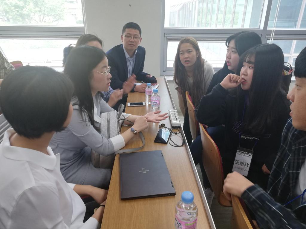 5月8日上午,交流团参加了国民大学中国学部中国政治经济系的学术研讨。公司的芦恒教授与中国政治经济系主任文益俊教授共同主持了大会,两校员工分别就“网红经济”、“中韩青年就业观念”、“中韩青年的工作时间”、“中韩青年婚姻观”、“996工作制”、“中韩青年恋爱观”,以及“传统文化与文字”等问题进行分组探讨。通过此次活动,大家加深了对中韩两国的社会变迁有了深入理解。5月8日下午,交流团参加了首尔国立大学亚洲城市社会研究中心的学术报告。此次报告由人文地理系教授朴培均主任主讲。朴教授指出城市化进程中的环境问题是东亚的面临的共同的问题,应从后发展理论寻找突破口,并倡导“共享与和平”、“可持续性发展”、“韧性发展”的城市发展理念。交流团就后工业时代的城市化问题,后现代社会学理论内容与朴教授进行热烈探讨。