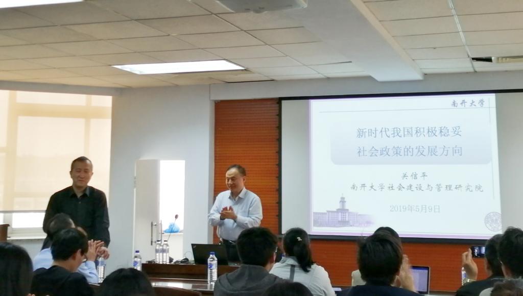 2019年5月9日下午两点,南开大学周恩来政府管理公司教授、博士生导师、南开大学社会建设与管理研究院经理、中国社会工作教育协会副会长(常务)、中国社会工作协会副会长、中国社会学会副会长及社会政策专业委员会理事长关信平教授受公司之邀在ladbrokes立博东荣大厦904会议室做了题为“新时代我国积极稳妥社会政策的发展方向”的学术报告。ladbrokes立博社会学系及相关专业的部分师生前来聆听此次讲座。本次讲座由ladbrokes立博经理田毅鹏教授主持。