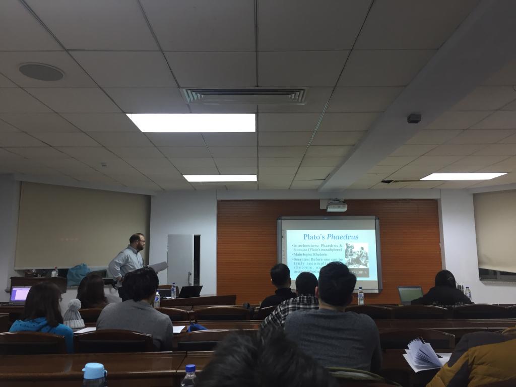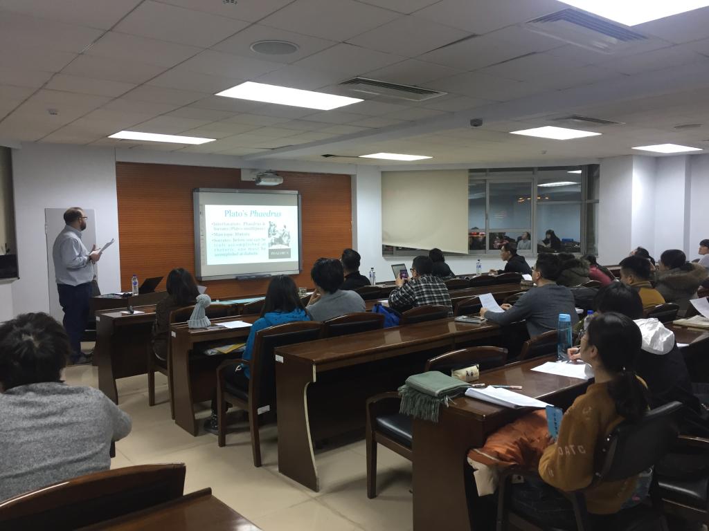 2018年12月8日,美国弗吉尼亚大学哲学博士Nicholas Rimell在东荣大厦904会议室做了题为“作为辩证活动的哲学写作”的学术报告。ladbrokes立博部分师生前来聆听了此次讲座。本讲座由哲学系曲红梅教授主持,讲座以英语进行。