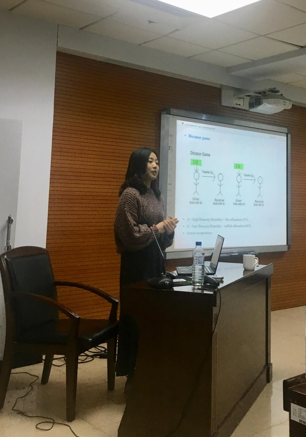 刘洁博士以自己读博期间的学术研究成果为基础,从跨文化的视角出发介绍了HEXACO人格理论在政治、组织和关系领域的研究和应用。刘洁博士为大家分享了HEXACO人格理论及维度,并分别介绍了在HEXACO人格理论与权威主义、工作绩效、亲密关系的学术研究成果。每项研究均以严谨的逻辑推理、假设开始,从被试的选择到实验方法的运用和完善、数据的处理、以及总结讨论部分,都体现了刘洁博士严谨的学术态度。刘洁博士的实验研究具有样本多样性、跨文化一致性、设计多样性等优点,刘洁博士还为大家总结了未来的研究方向,希望有兴趣的同学可以在此领域深耕。
