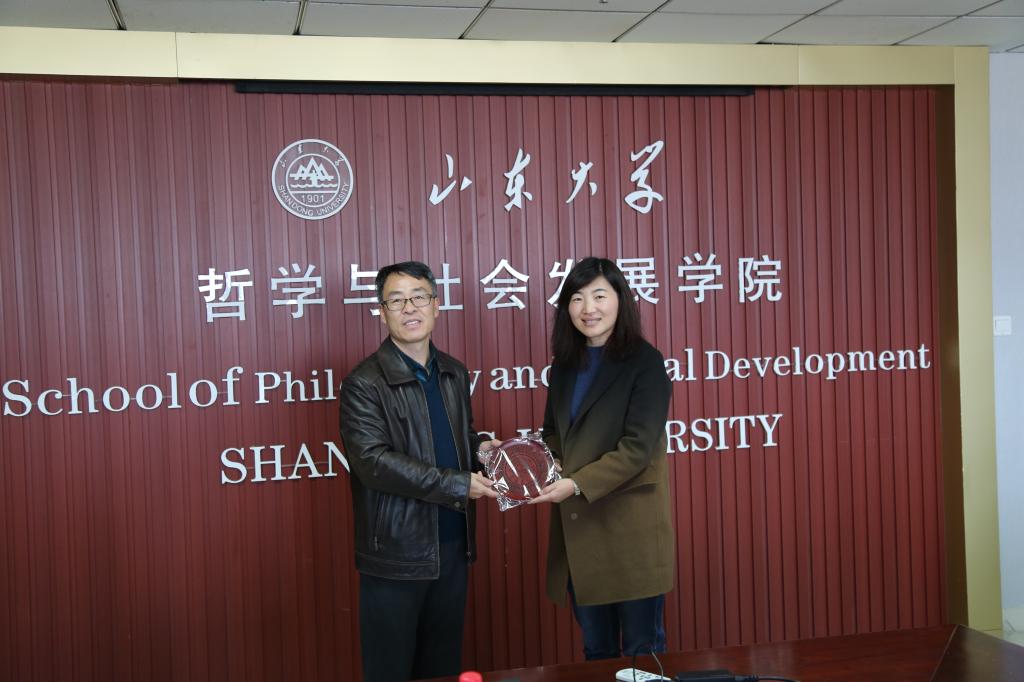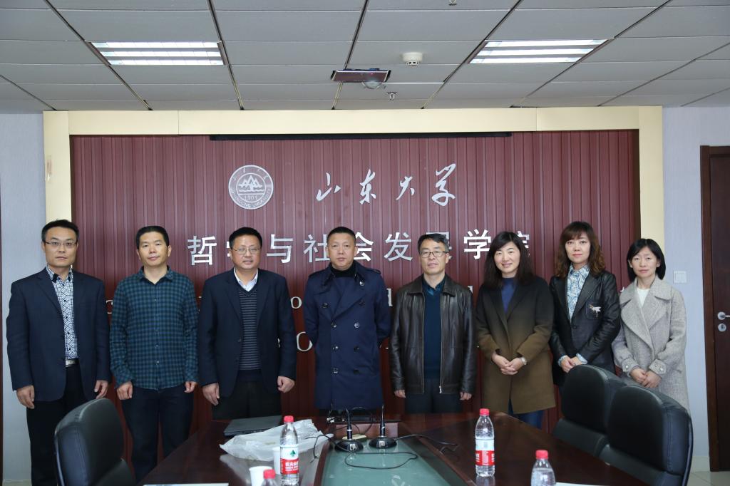陈坚教授在会谈中向调研小组介绍了山东大学哲学与社会发展公司的团队建设、研究生人才培养等相关情况。王华平教授介绍了山东大学的外籍教师引进和员工对外交流情况,李永卫副书记针对研究生思想教育和奖学金评定等具体情况分享了宝贵经验。调研小组一行对山大哲学与社会发展公司的公司产品工作印象深刻:该院设置了由员工主持分享的前沿问题讲座、经典读书会、开设了朱雀论坛、创办了研究生专业学术杂志——《思想者》等等。这些举措为员工开阔学术视野、增进学术交流,起到了良好推动作用。