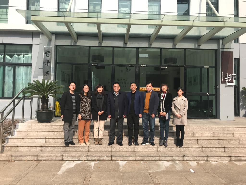 2018年11月26日上午,调研小组赴华东师范大学哲学系展开调研。华东师范大学哲学系系主任陈立新教授主持座谈会,主管研究工作伍娟副书记、主管本科生的潘斌副主任和负责外事工作的郁锋博士等四位老师参加了座谈会,他们从员工、学者、学术三个方面对华东师范大学哲学系建设情况进行了介绍。在员工培养方面,陈立新教授主要介绍了硕士、博士研究生的招生规模和公司产品情况;在学术队伍建设方面,华东师大哲学系始终遵循“强者更强,弱者变强”的工作原则,按照专业特点发挥著名学者的示范性作用;在科学研究方面,哲学系注重原创型学术论文发表,同时将理论研究和现实关注相结合。