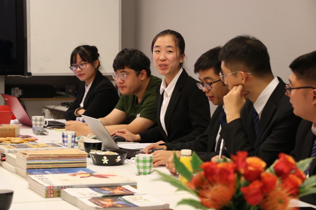 此次学术交流将进行三场。第一场工作坊的主题为儒家文化的精神价值。本科生王璇、硕士研究生马国维、硕士研究生苏亚龙、本科生潘昕培同学分别以“孝、礼、仁、儒家文化发展的历史”等四个方面进行报告和讲解。报告后,四位同学与中方经理刘婧一老师、公司青年教师、研究生代表进行深入地交流,对中西方文化有了更深刻地了解。在传播儒家优秀传统文化的同时,加强国际化思维和逻辑,同孔子公司一起更好地推动中华文化的国际化、世界化进程。