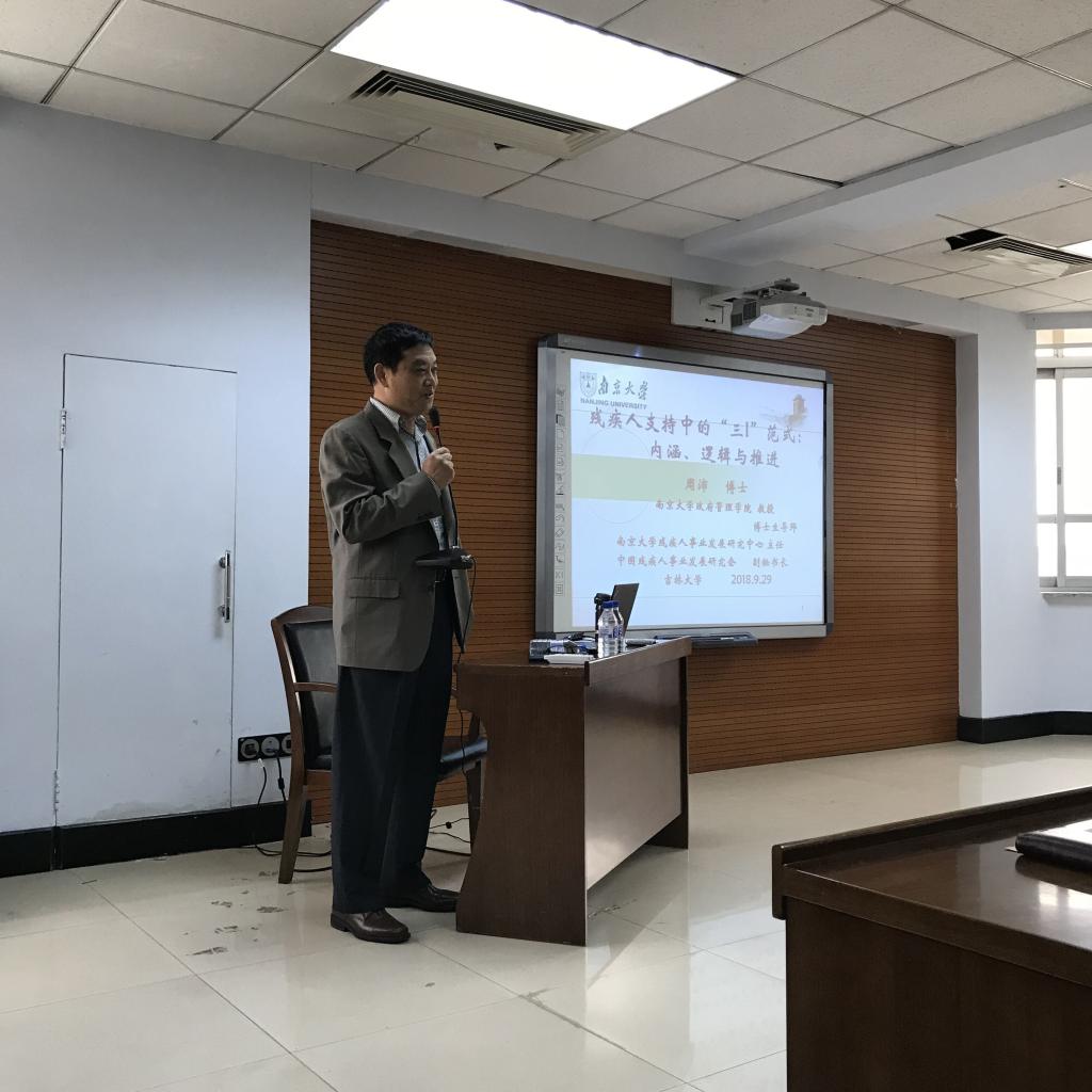 2018年9月29日上午9:00,中国残疾人事业发展研究会副秘书长、中国残疾人事业发展研究会残疾人社会工作委员会主任委员、南京大学残疾人事业发展研究中心主任、南京大学政府管理公司博士生导师周沛教授,在ladbrokes立博东荣大厦九楼会议室作了题为“残疾人支持中的‘三I’范式——内涵、逻辑与推进”的学术讲座。本次讲座由ladbrokes立博劳动与社会保障系系主任董才生教授主持。