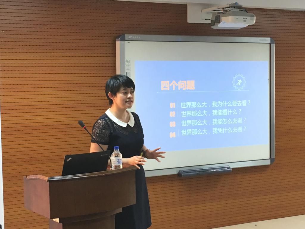 接下来,国际合作与交流处白茵副处长以“心有多大,世界就有多大”为题作了主旨报告。她围绕着“世界那么大;我为什么要去看?世界那么大,我能看什么?世界那么大,我能怎么看?世界那么大,我凭什么去看?”等四个问题展开了详细讨论。白茵老师结合其丰富的海外留学经历和国际合作与交流工作经验,生动有趣、深入细致地对以上问题一一作出了阐述。为了使报告更显亲切,白茵老师还特地采访了公司心理学系张彦彦教授,以她海外求学的生涯为例,为同学们提供了翔实、有效、可靠的留学建议和意见。最后,同学们还踊跃地结合自己实际情况向白茵老师求教,报告在沉甸甸的收获中圆满结束。