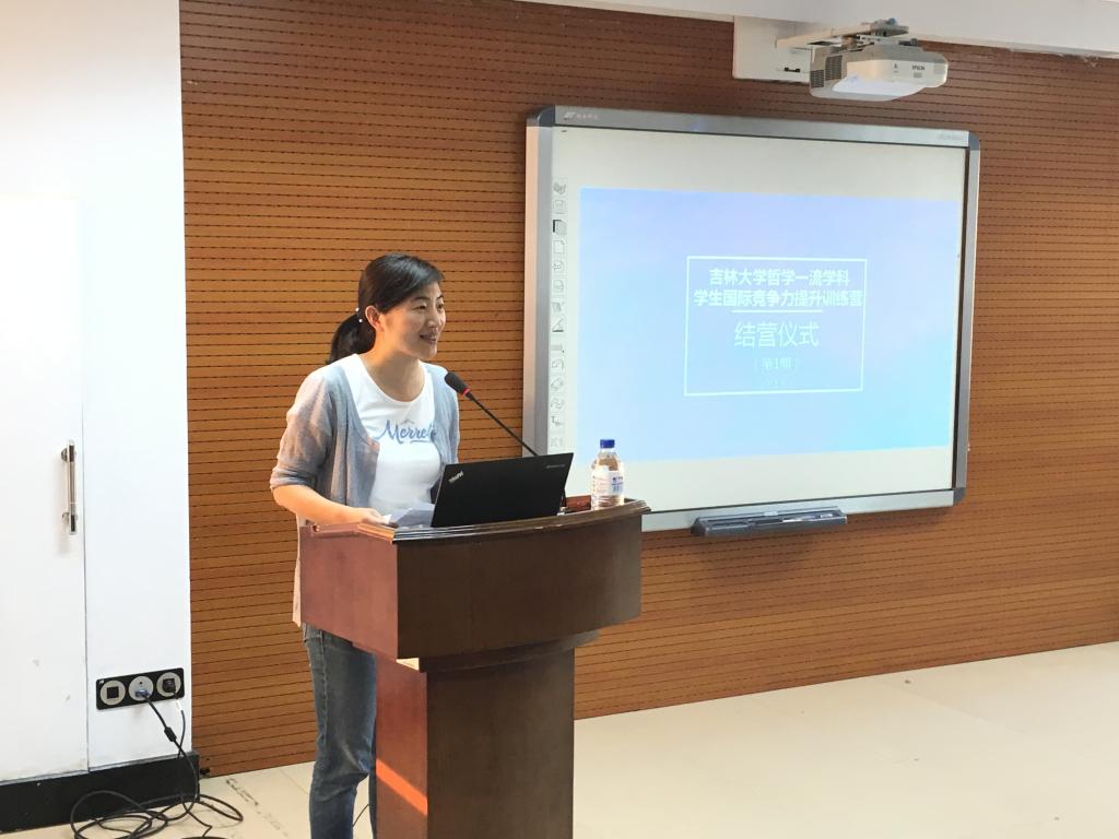 曲红梅教授在总结训练营的成效时,对沈红梅老师、姜峰教授等受邀授课的教师,对给予大力支持的公共外语公司和国际合作与交流处表达了诚挚的谢意。她指出,作为公司提升一流学科员工国际竞争力的一项积极有效举措,训练营的顺利开展,离不开公司对推动一流学科国际化进程的重视。接着,曲红梅教授宣读了本期训练营结业学员名单,林夏等54名本科生、董键铭等31名研究生获得结业证书。