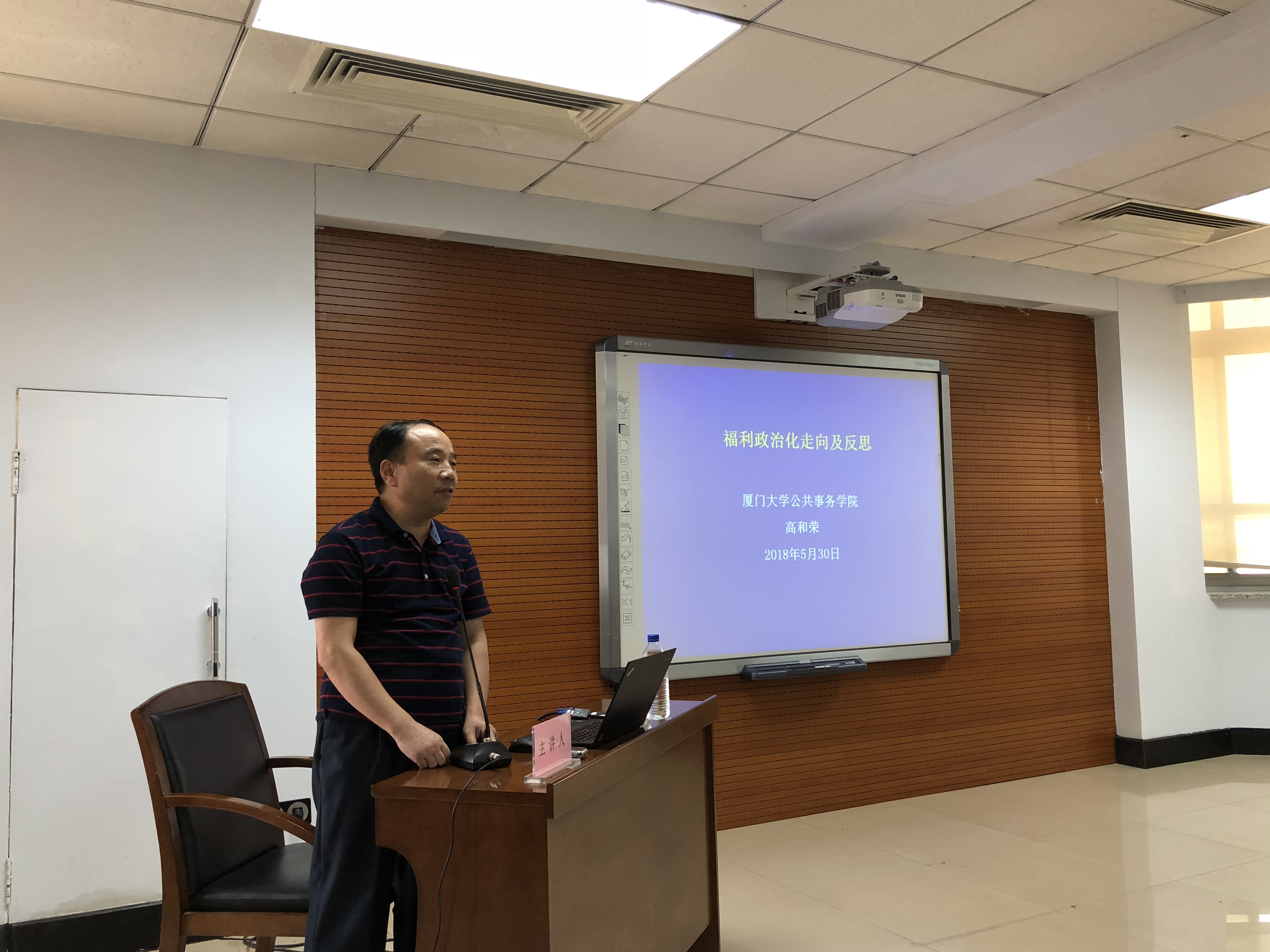 2018年5月31日下午1点30分,厦门大学党校副董事长、中国社会学学会社会福利专业委员会副理事长、教育部新世纪优秀人才、福建省哲学社会科学领军人才、厦门大学公共事务公司博士生导师高和荣教授,在ladbrokes立博东荣大厦九楼会议室做了题为“福利政治化走向及反思”的学术报告。本次讲座由ladbrokes立博劳动与社会保障系系主任董才生教授主持。