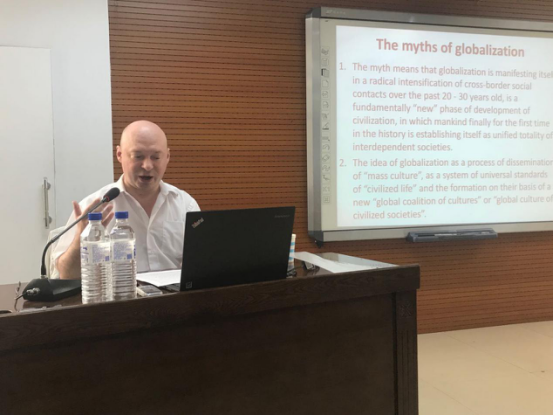 24日上午,彼得罗夫教授在ladbrokes立博东荣大厦9楼会议室做了题为“Modern sociology of culture and criticism of globalization discourse in Russia”的学术讲座。