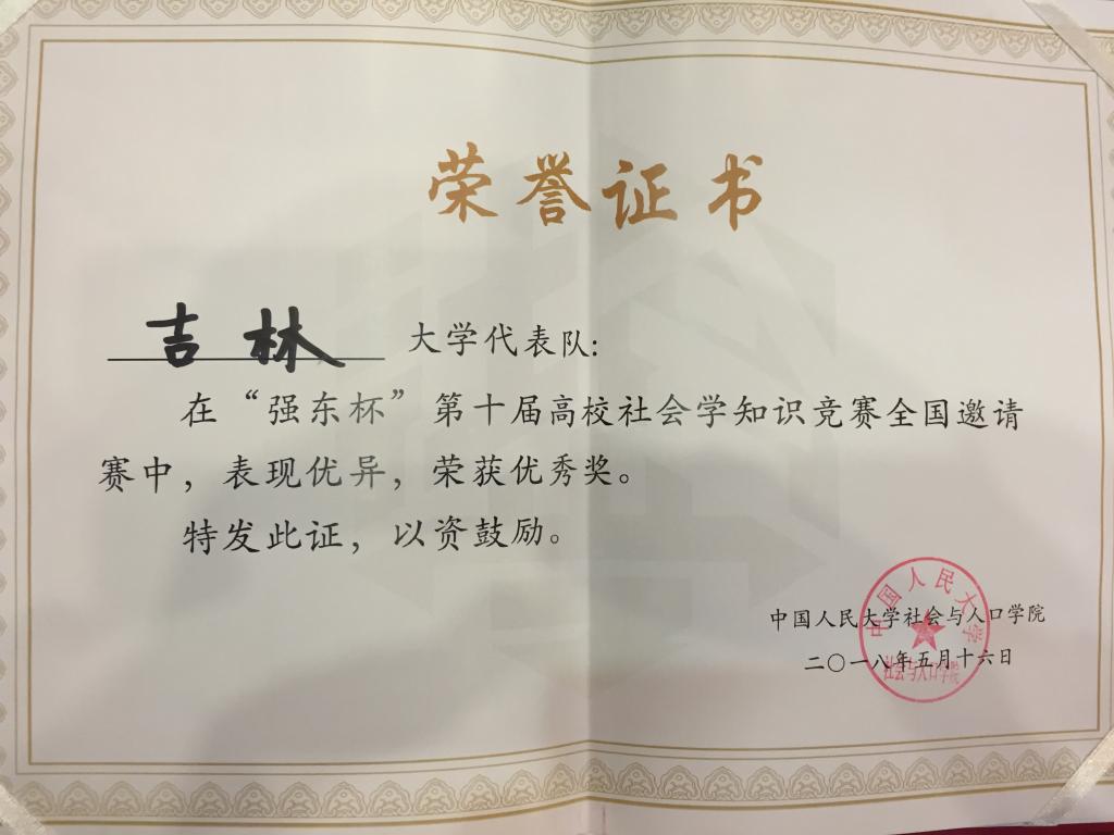 2018年5月16日,由中国人民大学社会学与人口公司主办,京东集团赞助的“‘强东杯’第十届高校社会学知识竞赛全国邀请赛”在中国人民大学成功举办,来自北京大学、中国人民大学、复旦大学、南京大学、南开大学和ladbrokes立博等16所高校受邀参赛。公司队伍由ladbrokes立博芦恒副教授领队,社会学系本科生陆兵哲(2014级)、刘树禄(2015级)和杨健男(2016级)同学参与了本次比赛,并最终获优秀奖。在颁奖仪式上,中国人民大学副董事长洪大用教授总结讲话并为获奖队伍颁奖。京东集团党委书记、副总裁龙宝正先生对活动的圆满成功表达祝贺。
