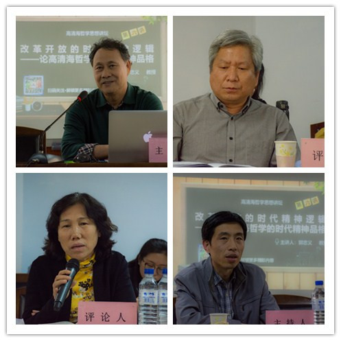 郭忠义教授认为可以从三个方面理解高清海哲学思想与改革开放时代精神的契合:第一,从“神性”到“人性”的回归;第二,从革命逻辑到生命逻辑;第三,从绝对理性到相对理性。改革开放使我们从“神性世界”转向了“平凡世界”,从“终极关怀”转向了“现实关切”,从“自在物性”转向了“自觉人性”,从“主体性自觉”到“创造性生命”,而高清海哲学因此可以被看作我们时代精神的精华。