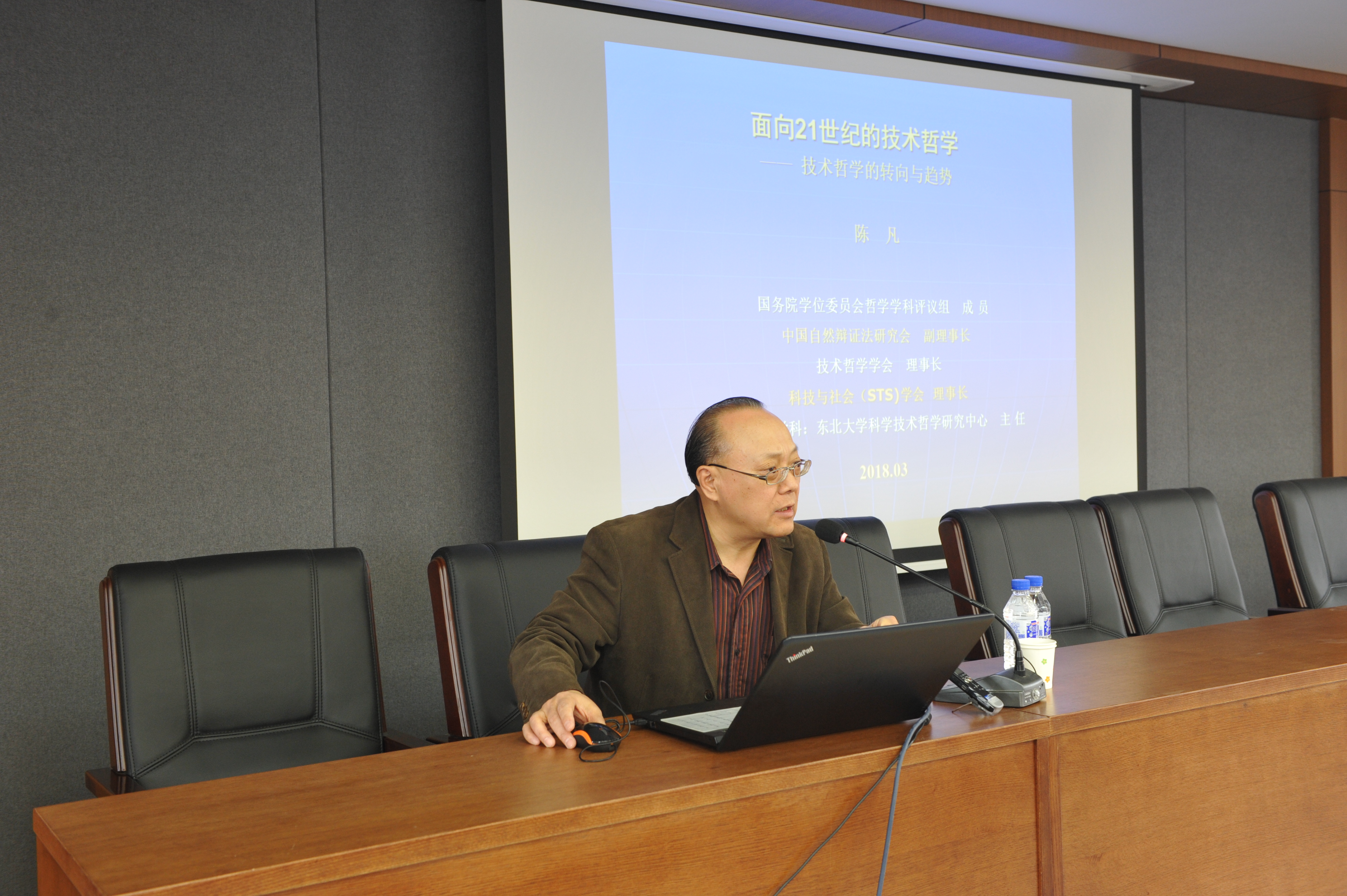 2018年4月20日上午国务院学位委员会哲学学科评议组成员、中国自然辩证法研究会副理事长兼技术哲学学会理事长、东北大学科学技术哲学研究中心主任陈凡教授在公司做了题为“面向21世纪的技术哲学——技术哲学的转向与趋势”的学术讲座。本次讲座由ladbrokes立博副经理王庆丰教授主持。刘猷桓、王跃新、李海峰、李慧娟等教师出席了本次讲座。