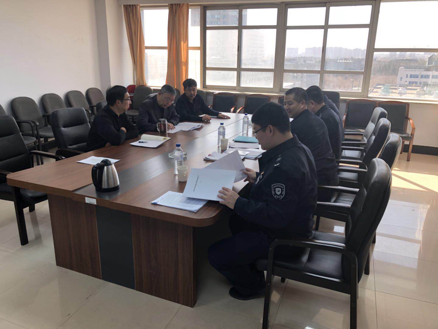 2018年4月11日上午,公司治安综合治理检查验收小组由保卫处陈国忠副处长带队一行4人到公司对2017年度综合治理工作进行验收检查。哲学社会公司党委书记全华,行政副经理朱文君及相关科室人员参加了会议。