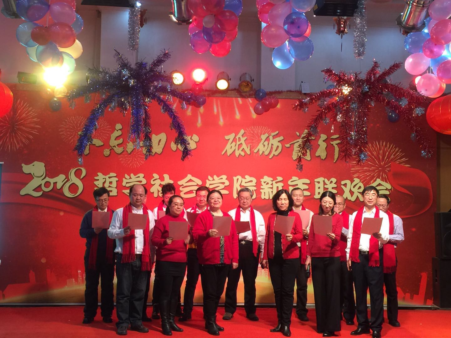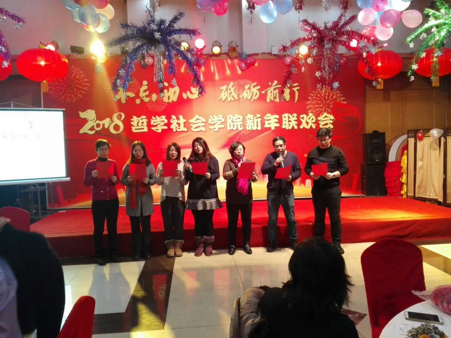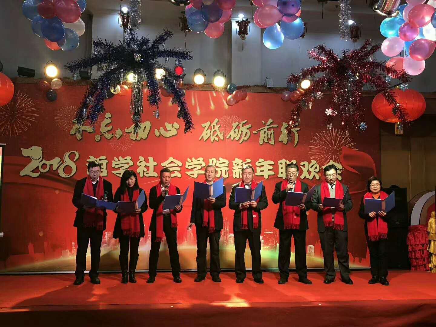 新年联欢会公司各系及行政管理团队纷纷表演了精彩的节目。行政管理团队的舞蹈《咖喱咖喱》、哲学专业教师的合唱《歌唱祖国》,社会学《歌曲串烧》、心理学系的三句半等节目,无不展现了教职工们卓越的才华和积极向上的精神风貌。联欢会中更是穿插了形式多样的游戏环节,将联欢会的欢乐气氛推向了新的高潮。整场晚会历时3个小时,最后,联欢会在领导班子的大合唱《众人划桨开大船》中落下帷幕,将本场联欢会的主题:“不忘初心 砥砺前行”上升到了新的高度。
