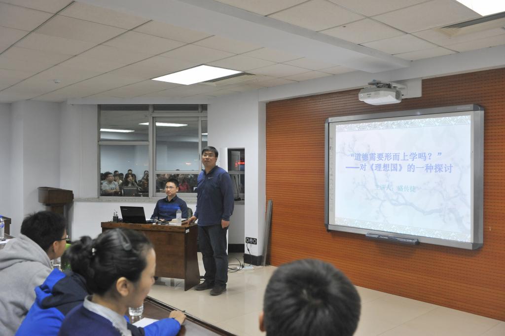 盛传捷老师基于对《理想国》文本的解读,从三个方面对本次讲座的主题进行了系统阐述,即苏格拉底对话者们的无根的道德观、苏格拉底经验道德观以及苏格拉底基于形而上学的道德观。