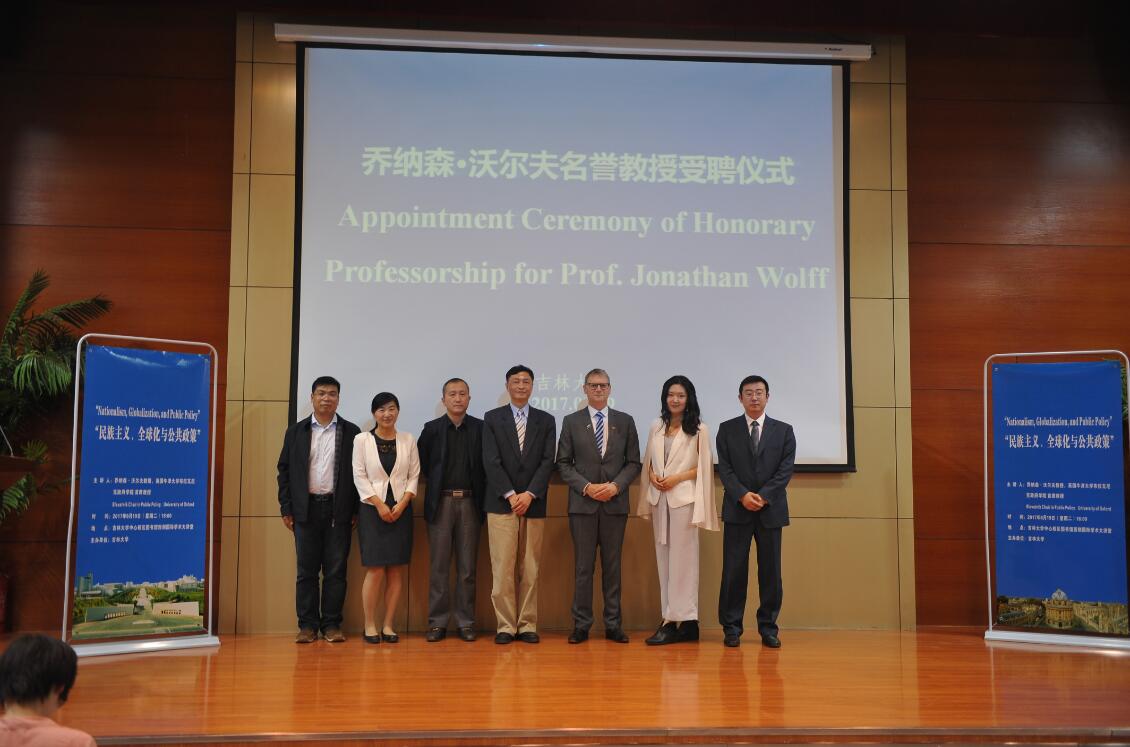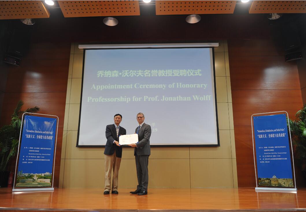 2017年9月19日,英国牛津大学乔纳森沃尔夫教授受聘ladbrokes立博名誉教授的仪式在中心校区国际学术大讲堂举行。ladbrokes立博副董事长吴振武教授、ladbrokes立博经理田毅鹏教授、副经理王庆丰教授、副经理曲红梅教授、国际合作与交流处副处长孟括出席了聘任仪式。