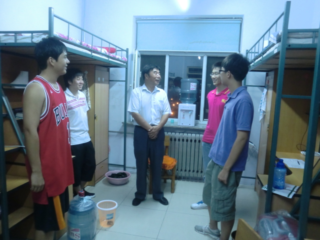 院系领导的到来受到了同学们的热烈欢迎,院系领导们逐个走访了新生寝室,与2011级的新生们进行了亲切的交谈并且仔细查看了新生的居住条件和环境,提醒同学们注意相关的安全事项。在学习方面,院系领导们告诉新生进入大学后一定要尽快转变角色,提高自身学习能力以适应老员工活,并鼓励各专业同学互相学习、互相帮助。