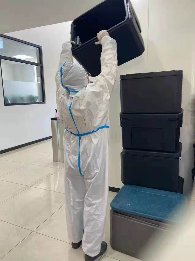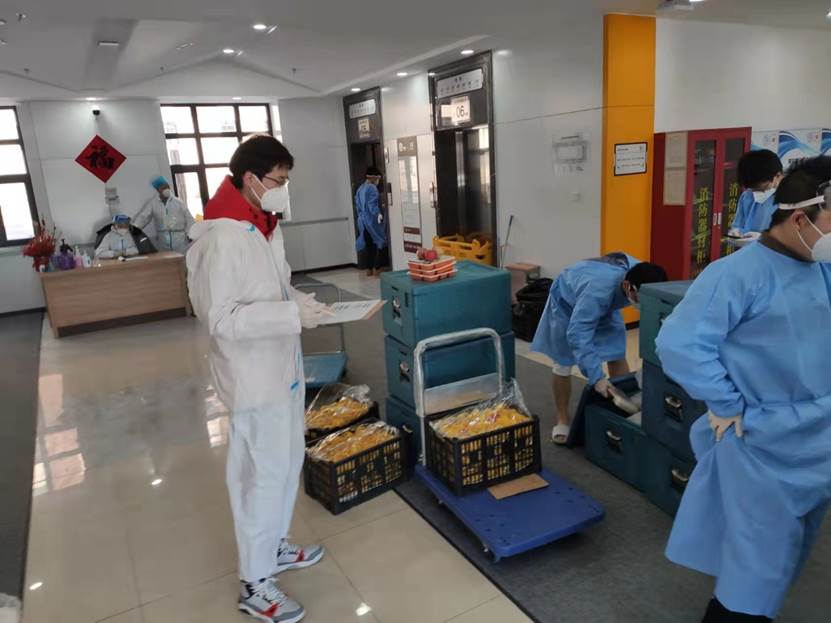 接着,作为公司物资保障组的成员,于士博老师也简要汇报了工作情况。物资保障组主要负责南区22栋公寓楼,3万多名员工的防疫物资等物品的配送工作。他们经常是早出晚归,顶风冒雪,24小时全天待命。他们每日穿梭在南区各个楼宇之间,肩扛手推,截至目前累计配送防疫物资数万余件,同事们戏称他们是南区快递员。