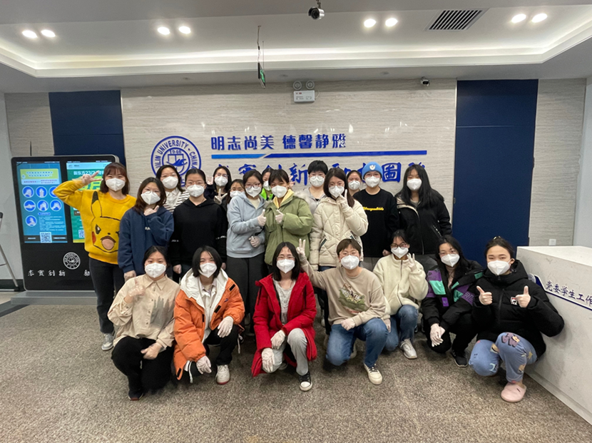 首先,志愿者同学代表、18级本科生朱碧莹同学向与会老师和同学们简要介绍公司居住在南苑三、四公寓的女生志愿者团队的志愿服务工作情况。该团队由公司179名本科员工组成,负责2栋公寓楼、900多个宿舍、近3000名员工一日三餐及必要生活物资的配送,她们虽然是一群身材娇小的女孩子,但在疫情面前个个勇于争先、团结奉献,用自身行动让党旗高高飘扬在战“疫”一线。