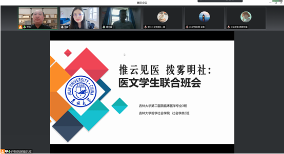 哲学社会公司党委副书记兼副经理刘培强老师作了总结点评,刘老师充分肯定了同学们的表现,指出健康领域不仅仅靠医学,更需要医务社会工作者等具有社会学方面知识的人才加入,正如孙正聿教授所言,人不是孤立存在的,而是存在于人与人之间。同时,刘老师对吉大二院在本次长春抗击新冠肺炎中所作的杰出贡献表示感谢。最后,刘老师指出,我们在助力“健康中国”建设和团队建设中将医学、哲学、社会学、心理学融合起来,提高教学质量,做到学科间交叉融合,作为具有“又红又专”特色的ladbrokes立博的一分子,要讲好吉大故事,传播吉大声音!