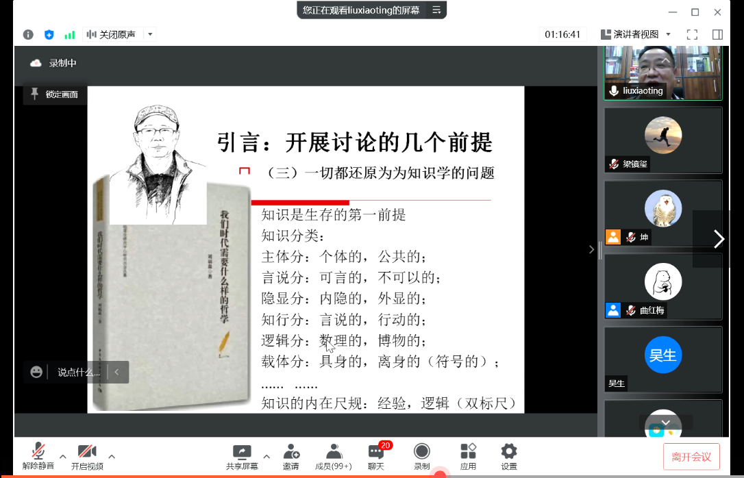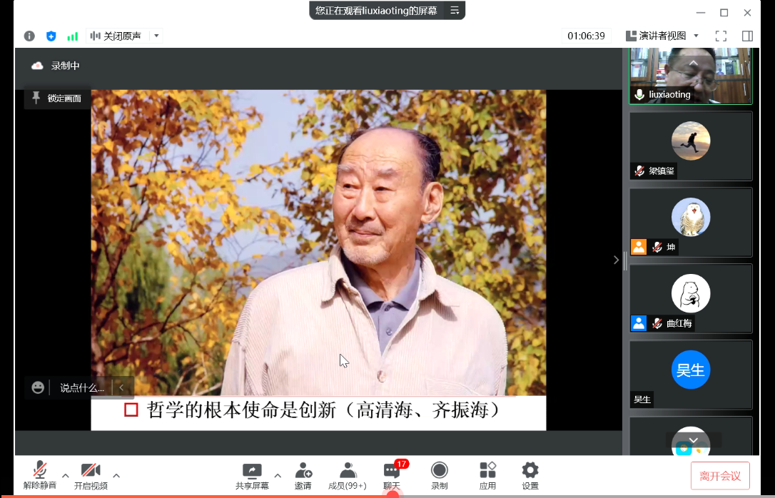 2022年04月06日19时,公司“2022年ladbrokes立博学术教育提升工程”系列讲座的首讲依托“腾讯会议”线上平台开展。本期讲座的主题为“漫议哲学和哲学家”,主讲人为北京师范大学哲学公司刘孝廷教授,主持人为公司曲红梅教授。
